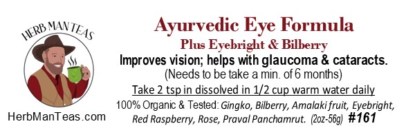 Gingko (Gingko biloba) – Enhances circulation to the retina and optic nerve; traditionally used in cases of glaucoma and poor blood flow to the eyes.